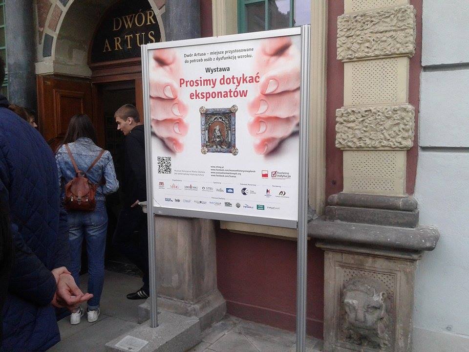 Następnym celem podróży był Dwór Artusa. Udaliśmy się na wystawę „Prosimy dotykać eksponatów”. Promowała ona przystosowanie miejsc publicznych jak i muzeów dla osób niewidomych. Wszystkie opisy eksponatów na tabliczkach były napisane alfabetem Braile’a. Nawet obrazy były umieszczone w szklanej gablotce, ze specjalnymi wypukłymi miejscami, które pozwalały niewidomym poczuć i w pewien sposób zwizualizować obraz w swej głowie.